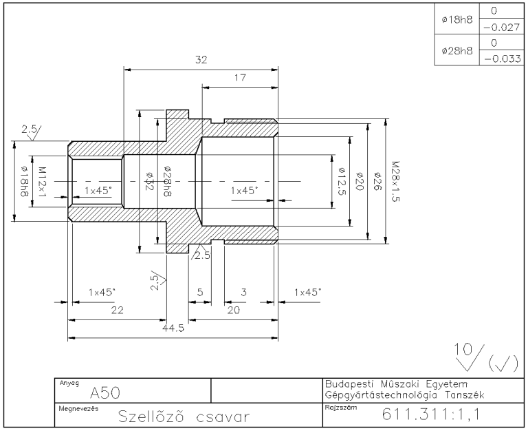 Megvagyok a vastag vonalas kontúrral. Jöhet a sraffozás, a tengely pontozott vonala, továbbá a méret- és segédvonalak.