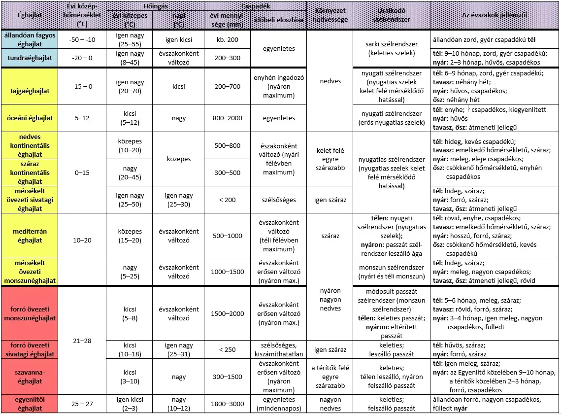 mint például uralkodó széljárás, évi középhőmérséklet, csapadék eloszlása stb.